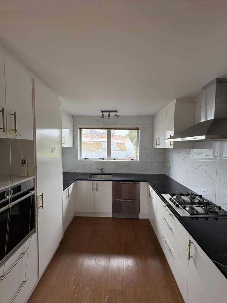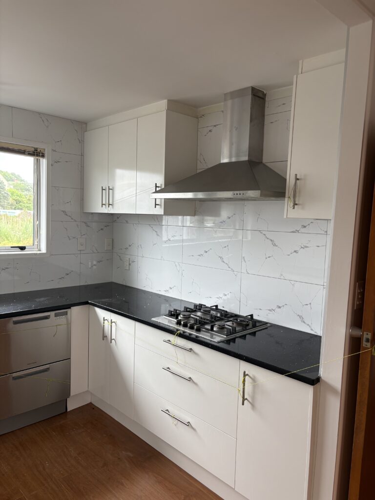 The open plan kitchen, living, and dining space is light-filled and functional, making everyday living easy. Double glazed windows paired with aluminium joinery provide year-round comfort and energy efficiency.